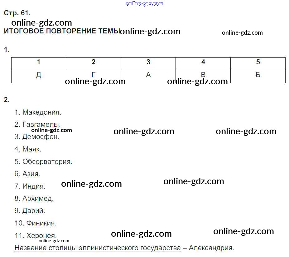 Готовые домашние задания по Истории за 5 класс Рабочая тетрадь Абрамов, Абрамова Вертикаль 2019 - Тема 7. Создание державы Александра Македонского. Эпоха эллинизма стр. 61