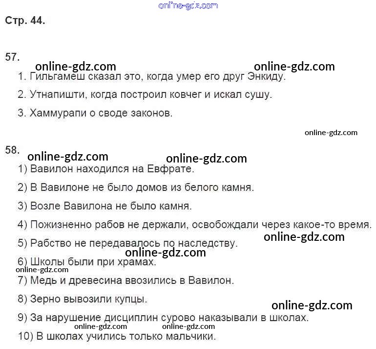 Готовые домашние задания по Истории за 5 класс Рабочая тетрадь Годер 2017 - Часть 1. Страницы 44