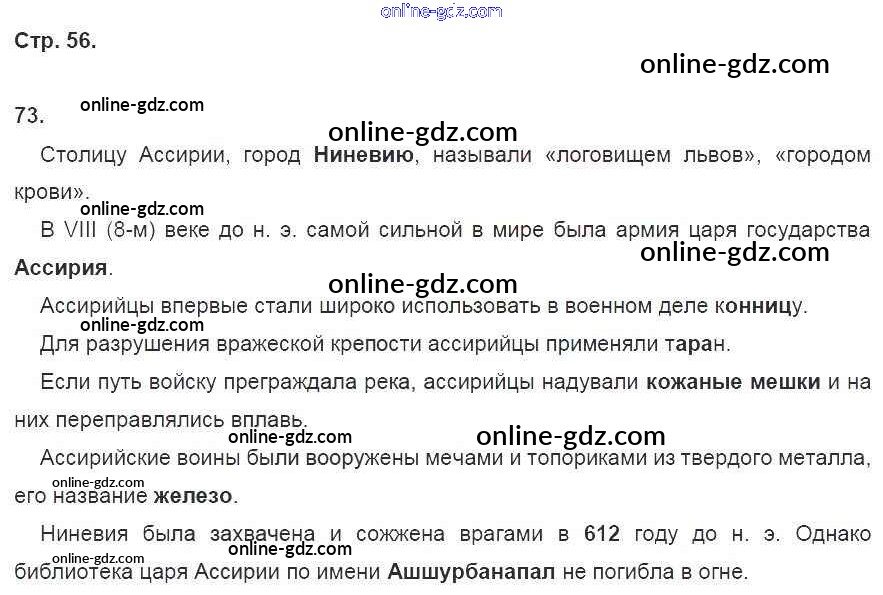 Готовые домашние задания по Истории за 5 класс Рабочая тетрадь Годер 2017 - Часть 1. Страницы 56