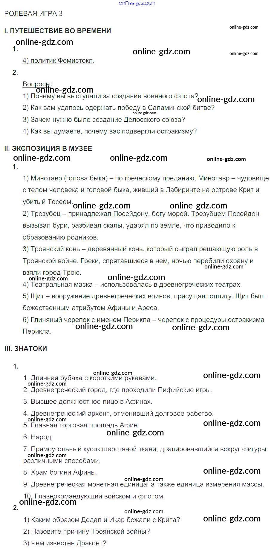 Готовые домашние задания по Истории за 5 класс Тематический контроль Саплина 2016 - Ролевые игры 3