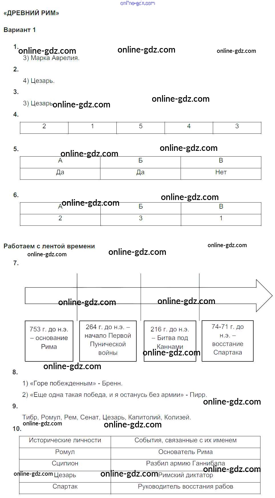 Готовые домашние задания по Истории за 5 класс Тематический контроль Саплина 2016 - КР-1. Древний Рим Контрольные работы вариант №1