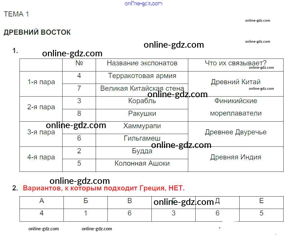 Готовые домашние задания по Истории за 5 класс Тематический контроль Саплина 2016 - Готовимся к олимпиаде Тема №1. Древний Восток