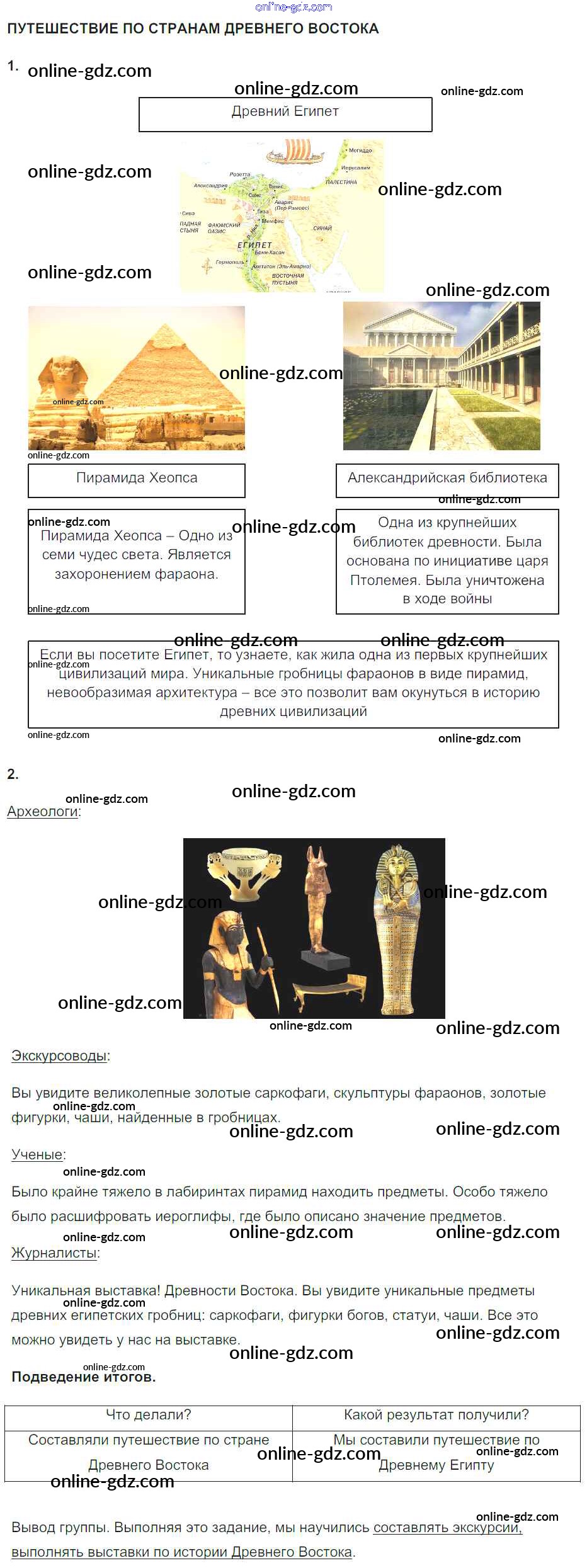 Готовые домашние задания по Истории за 5 класс Тематический контроль Саплина 2016 - Проекты 2. Путешествие по странам Древнего Востока