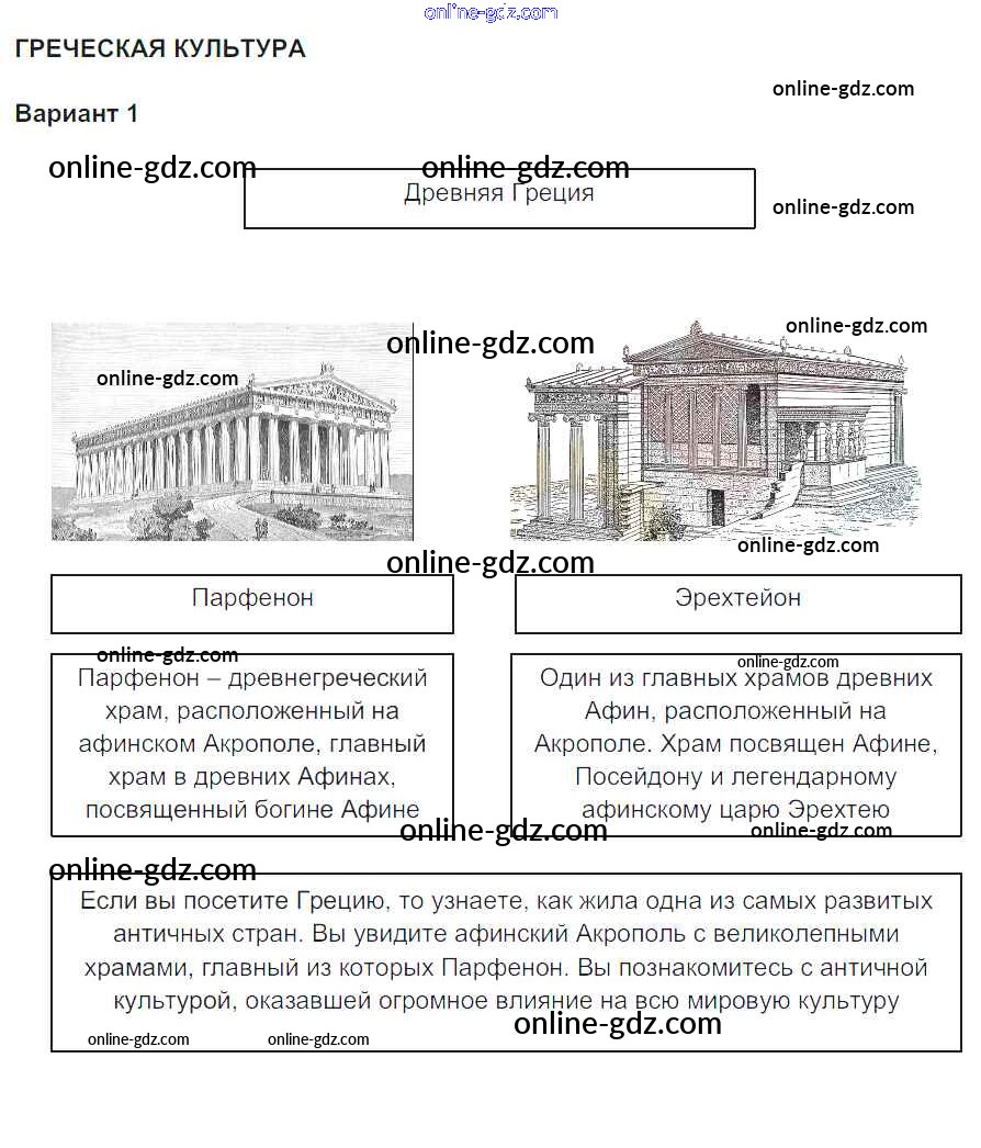 Готовые домашние задания по Истории за 5 класс Тематический контроль Саплина 2016 - Проект 1. Греческая культура Проекты Вариант №1