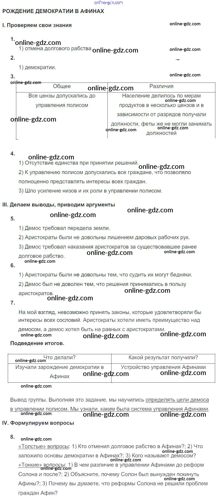Готовые домашние задания по Истории за 5 класс Тематический контроль Саплина 2016 - Самостоятельные работы СР №13. Рождение демократии в Афинах