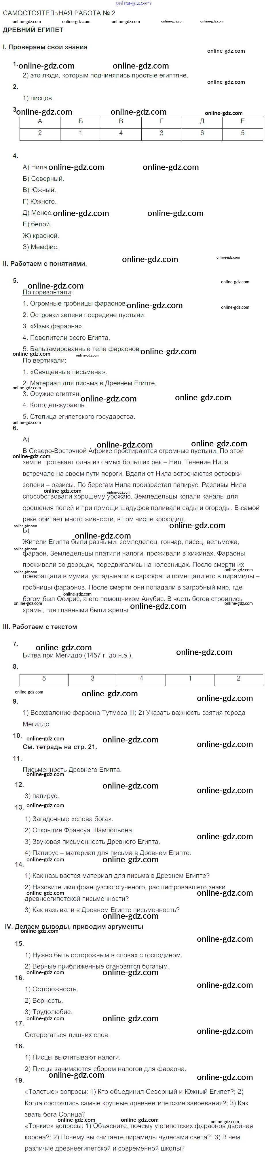Готовые домашние задания по Истории за 5 класс Тематический контроль Саплина 2016 - Самостоятельные работы СР №2. Древний Египет