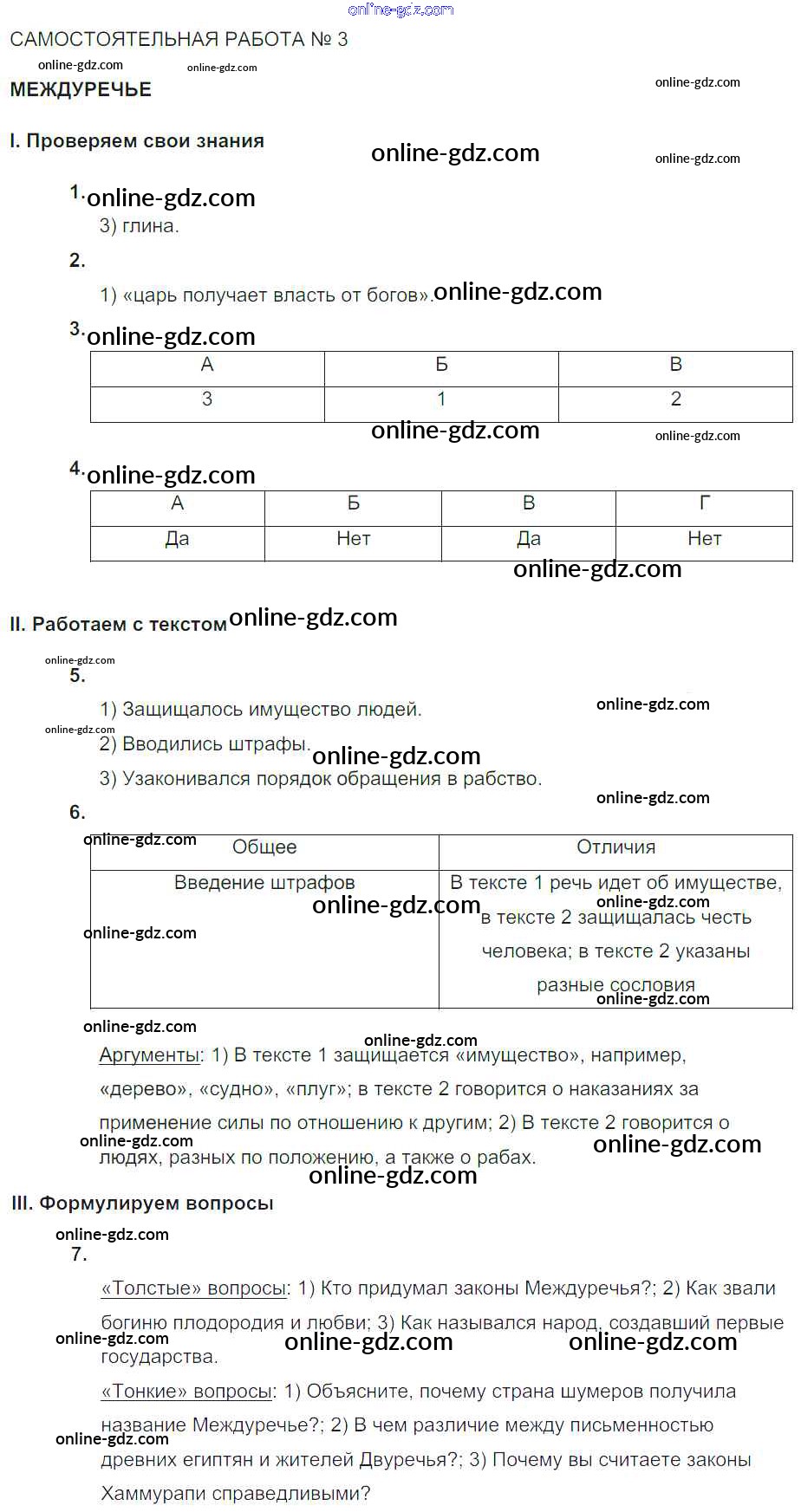 Готовые домашние задания по Истории за 5 класс Тематический контроль Саплина 2016 - Самостоятельные работы СР №3. Междуречье
