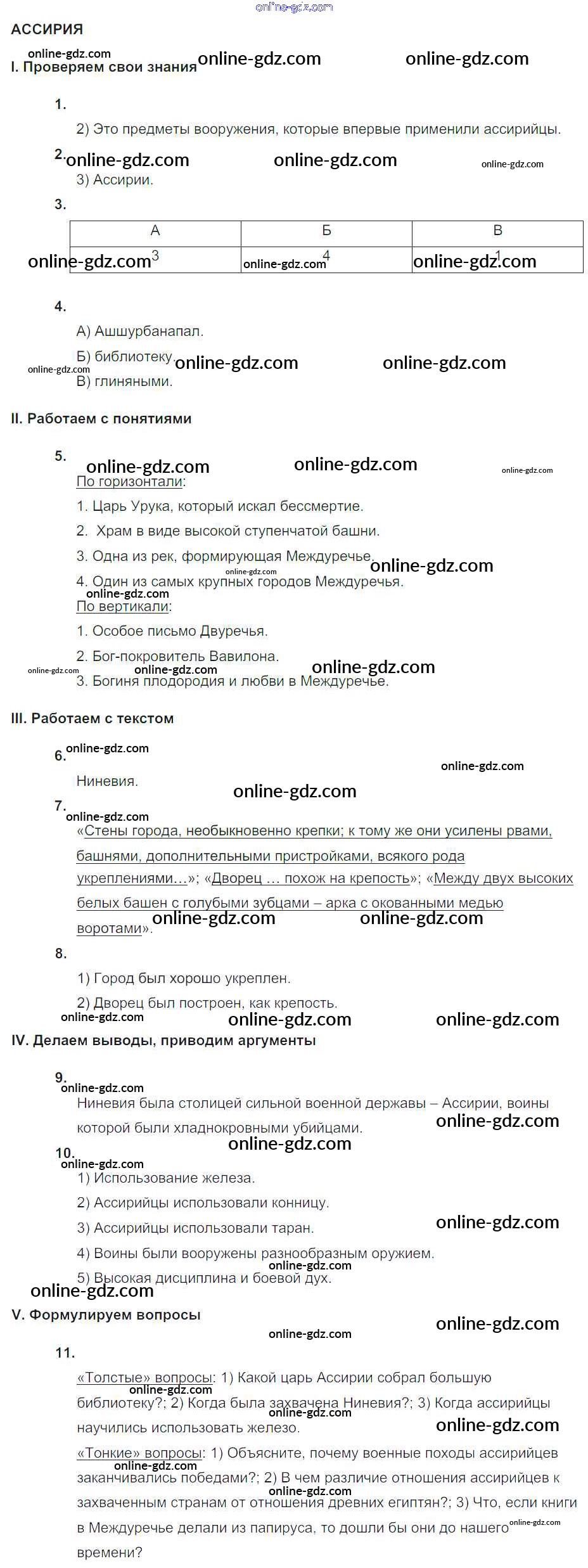 Готовые домашние задания по Истории за 5 класс Тематический контроль Саплина 2016 - Самостоятельные работы СР №4. Ассирия