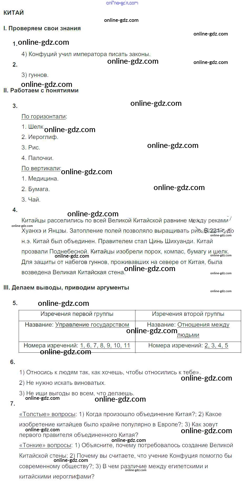 Готовые домашние задания по Истории за 5 класс Тематический контроль Саплина 2016 - Самостоятельные работы СР №9. Китай