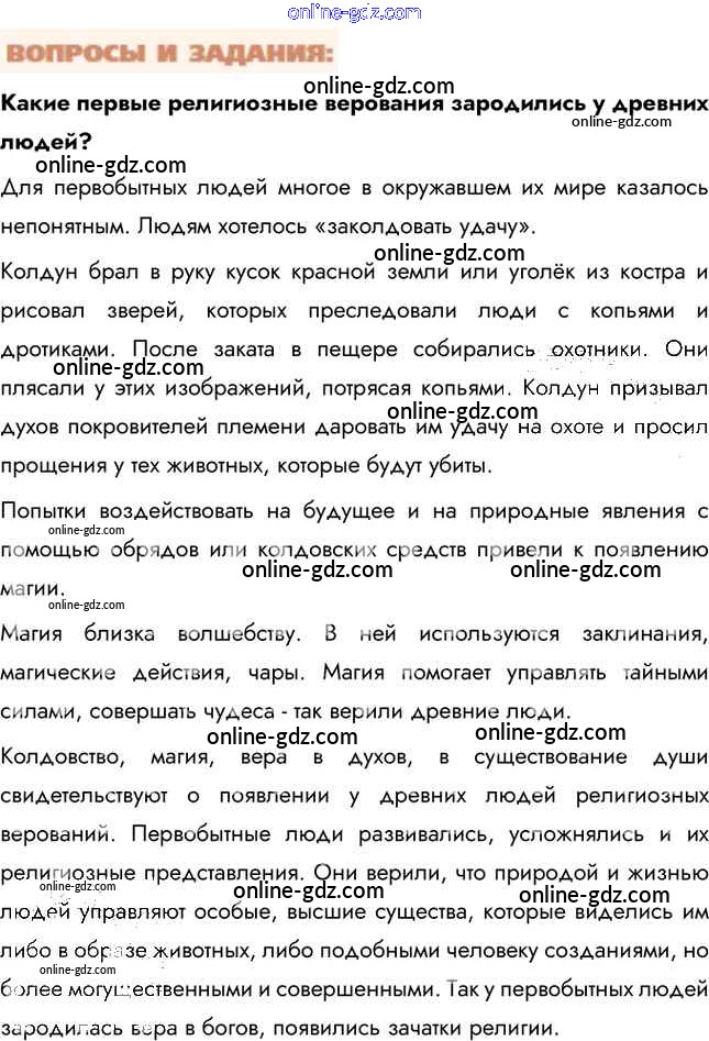 Готовые домашние задания по Истории за 5 класс Учебник Уколова Сферы 2019 - Вопросы и задания Зарождение религии и искусства 1