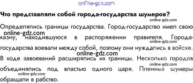 Готовые домашние задания по Истории за 5 класс Учебник Уколова Сферы 2019 - Вопросы и задания §7. Шумер: зарождение цивилизации. Культура Шумера 2