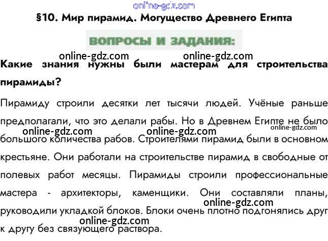 Готовые домашние задания по Истории за 5 класс Учебник Уколова Сферы 2019 - Вопросы и задания §10. Мир пирамид. Могущество Древнего Египта 1