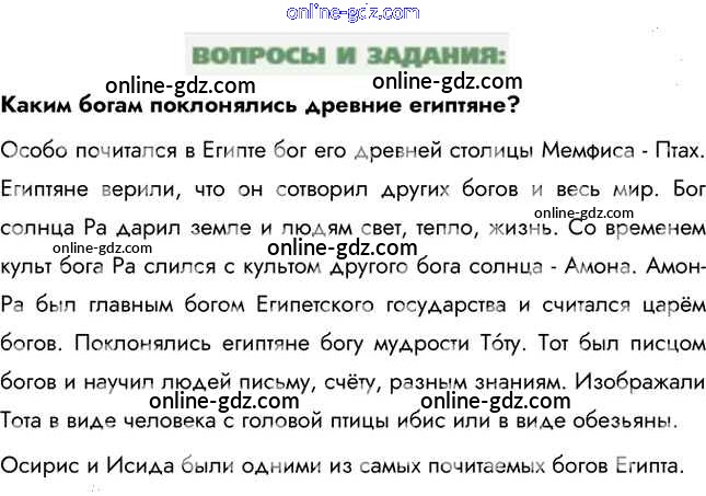 Готовые домашние задания по Истории за 5 класс Учебник Уколова Сферы 2019 - Вопросы и задания Верования древних египтян 1