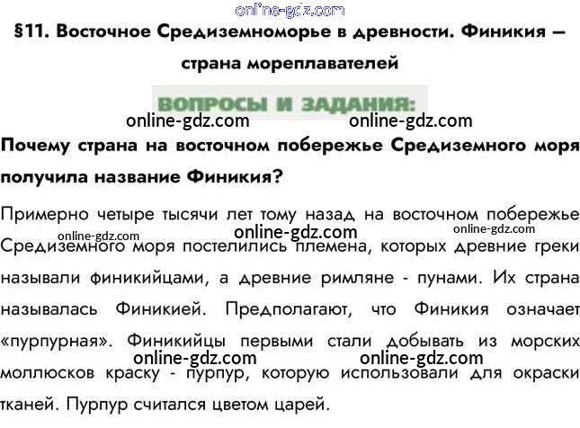 Готовые домашние задания по Истории за 5 класс Учебник Уколова Сферы 2019 - Вопросы и задания §11. Финикия — страна мореплавателей 1