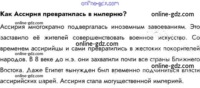 Готовые домашние задания по Истории за 5 класс Учебник Уколова Сферы 2019 - Вопросы и задания §13. Ассирийская импери 2