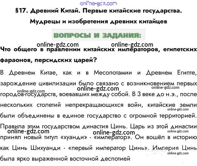 Готовые домашние задания по Истории за 5 класс Учебник Уколова Сферы 2019 - Вопросы и задания §17. Первые китайские государства. Мудрецы и изобретения древних китайцев 1