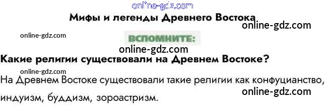Готовые домашние задания по Истории за 5 класс Учебник Уколова Сферы 2019 - Вспомните Мифы и легенды Древнего Востока 1