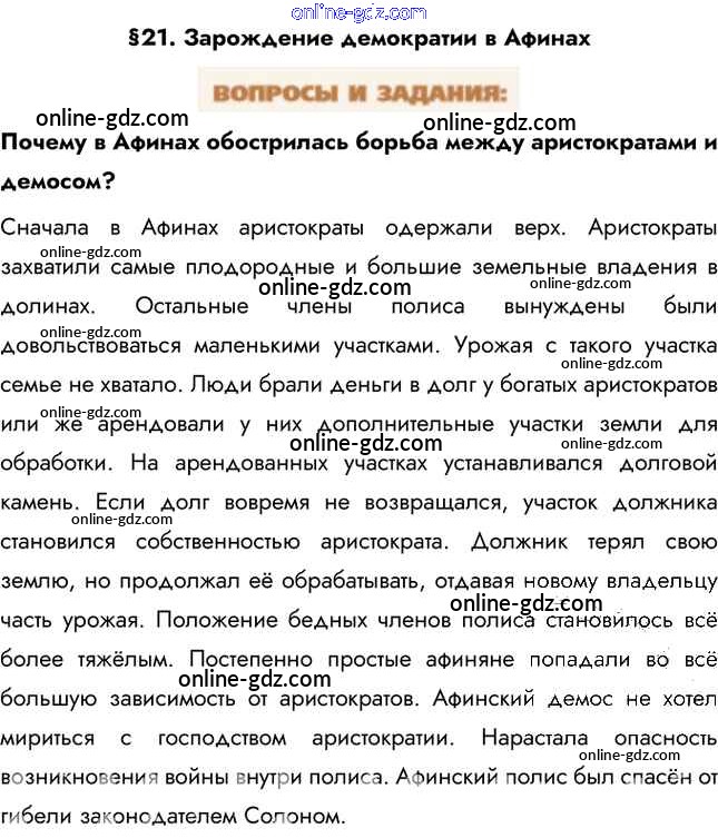 Готовые домашние задания по Истории за 5 класс Учебник Уколова Сферы 2019 - Вопросы и задания §21. Зарождение демократии в Афинах 1