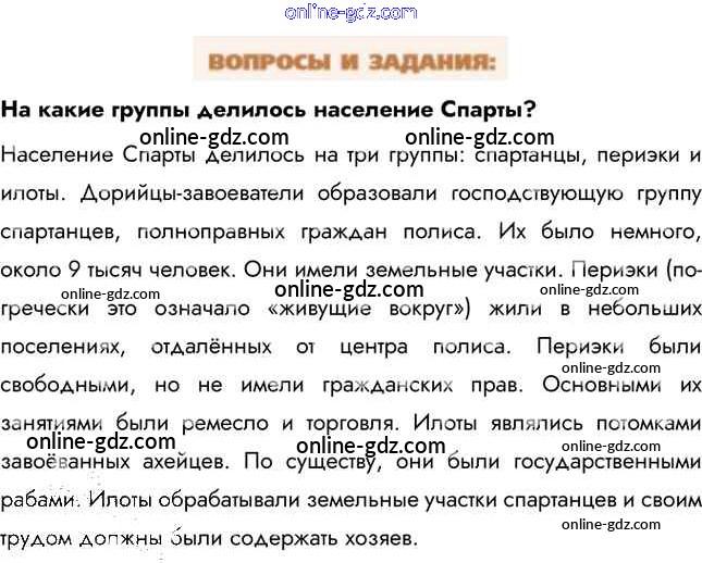 Готовые домашние задания по Истории за 5 класс Учебник Уколова Сферы 2019 - Вопросы и задания §22. Древняя Спарта 1