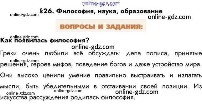 Готовые домашние задания по Истории за 5 класс Учебник Уколова Сферы 2019 - Вопросы и задания §26. Философия, наука, образование 1