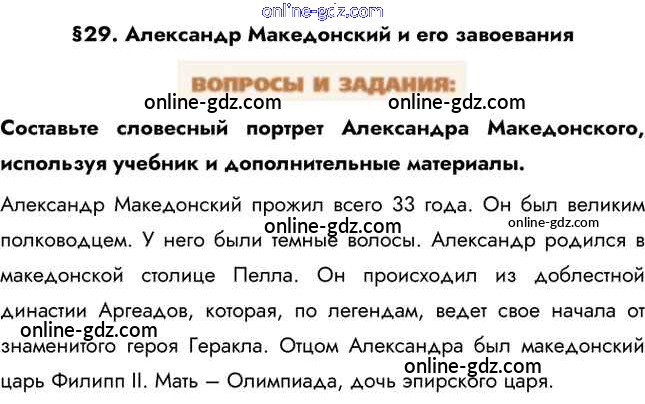 Готовые домашние задания по Истории за 5 класс Учебник Уколова Сферы 2019 - Вопросы и задания §29. Александр Македонский и его завоевания 1