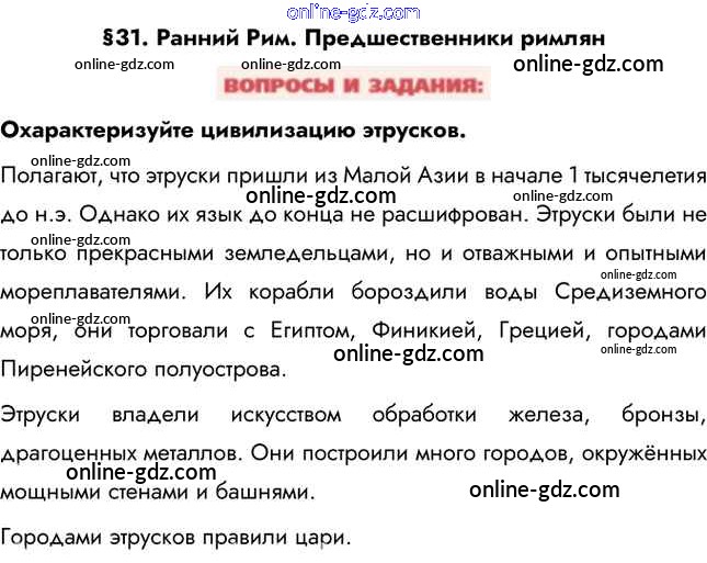 Готовые домашние задания по Истории за 5 класс Учебник Уколова Сферы 2019 - Вопросы и задания §31. Предшественники римлян 1