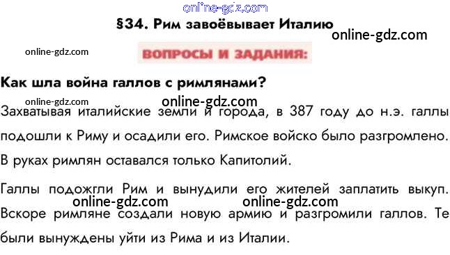 Готовые домашние задания по Истории за 5 класс Учебник Уколова Сферы 2019 - Вопросы и задания §34. Рим завоёвывает Италию 1