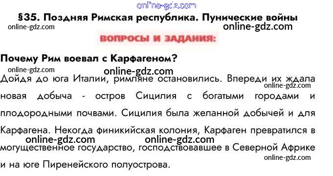 Готовые домашние задания по Истории за 5 класс Учебник Уколова Сферы 2019 - Вопросы и задания §35. Пунические войны 1