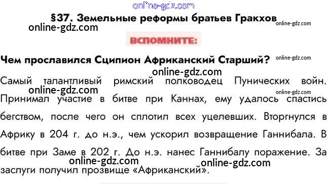 Готовые домашние задания по Истории за 5 класс Учебник Уколова Сферы 2019 - Вспомните §37. Земельные реформы братьев Гракхов 1