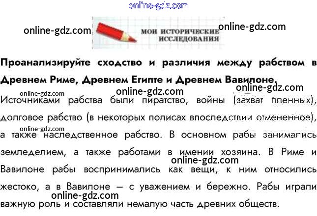 Готовые домашние задания по Истории за 5 класс Учебник Уколова Сферы 2019 - Мои исторические исследования §38. Рабство в Древнем Риме 1