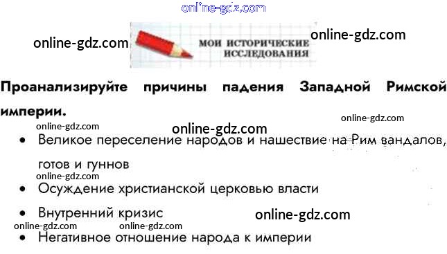 Готовые домашние задания по Истории за 5 класс Учебник Уколова Сферы 2019 - Мои исторические исследования §45. Падение Западной Римской империи 1
