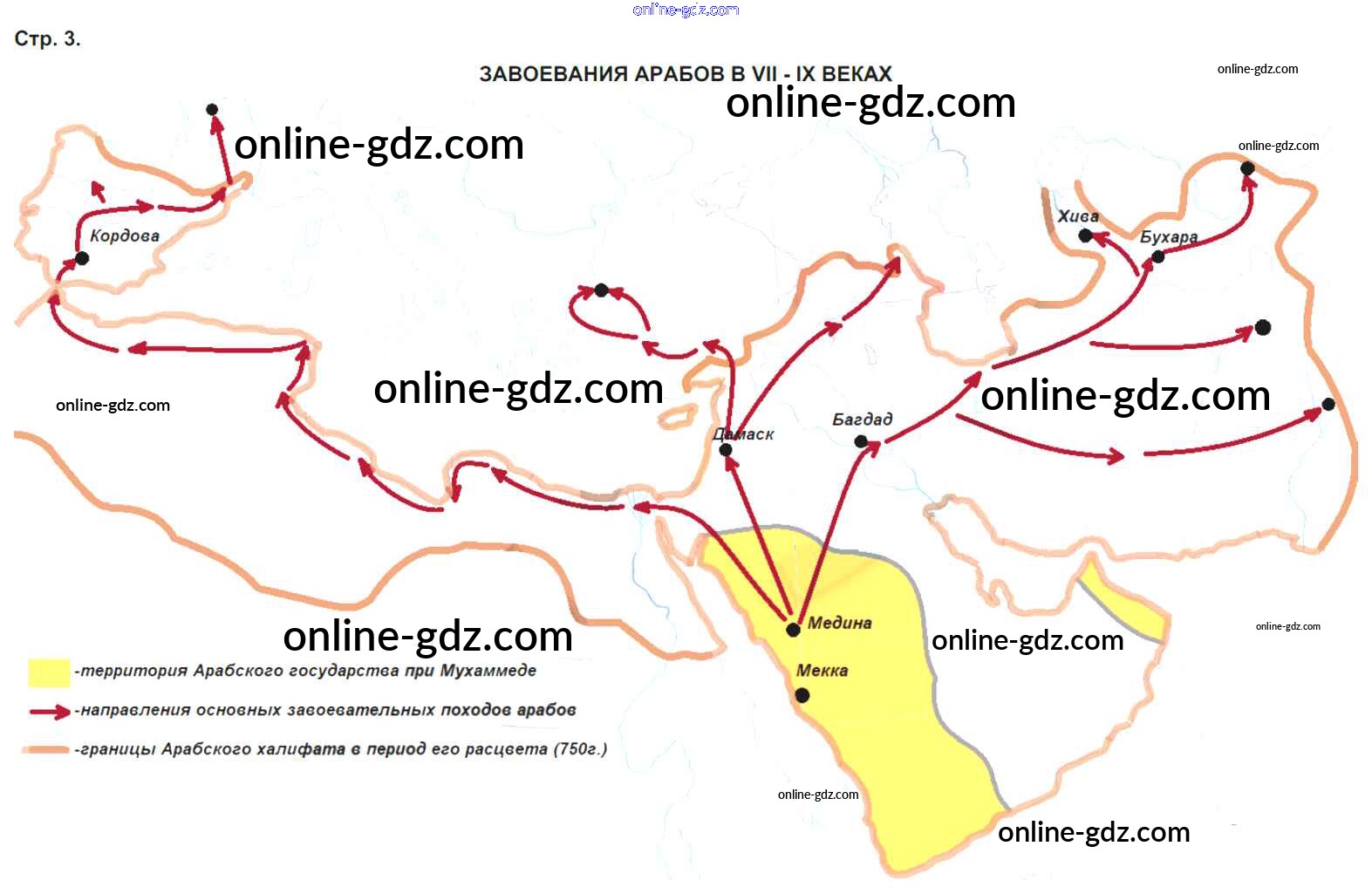Готовые домашние задания по Истории за 6 класс Атлас Чугунова 2019 - Страницы Страница 3. Завоевание арабов VII-IX веках