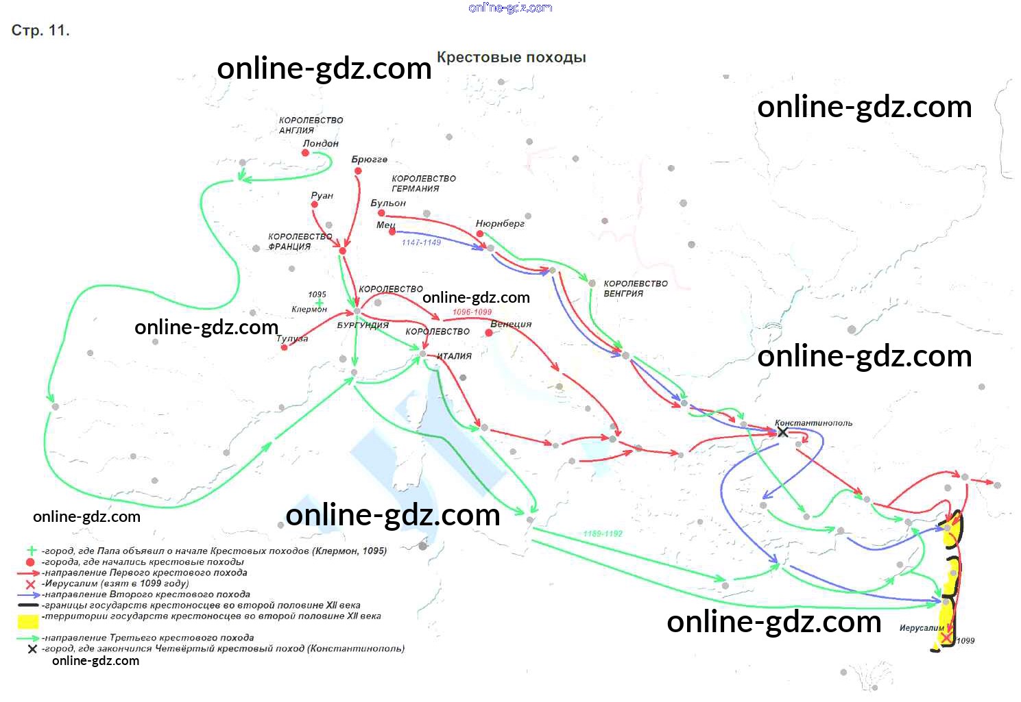 Готовые домашние задания по Истории за 6 класс Контурные карты Колпаков, Пономарев 2019 - Контурные карты стр. 11