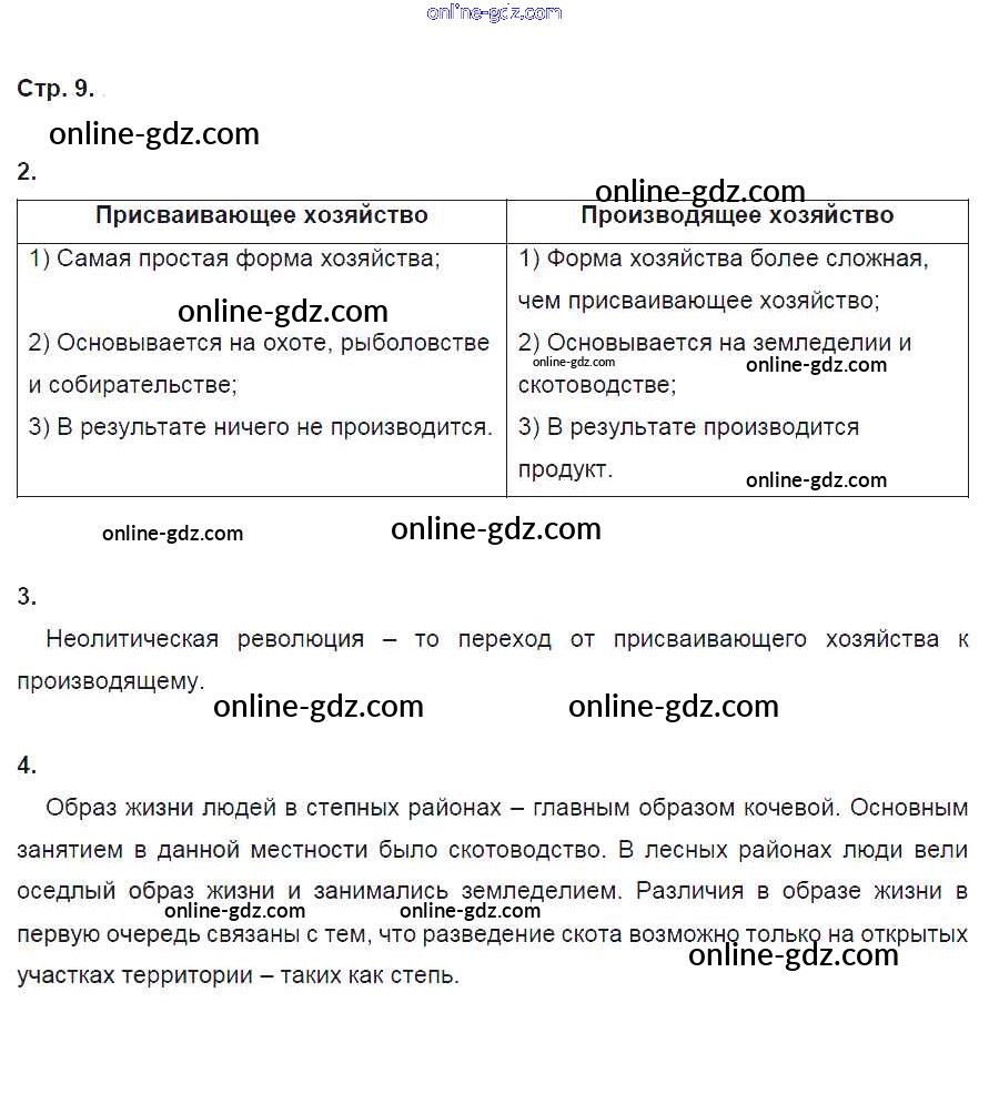 Готовые домашние задания по Истории за 6 класс Рабочая тетрадь Артасов, Данилов 2016 - §1. Древние люди и их стоянки на территории современной России стр. 9
