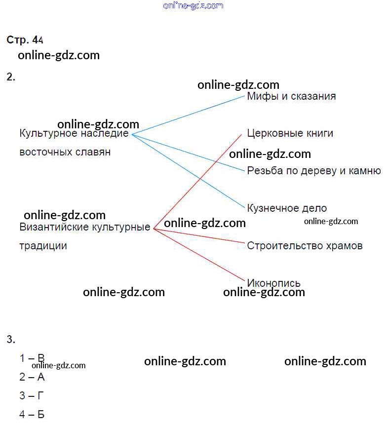 Готовые домашние задания по Истории за 6 класс Рабочая тетрадь Артасов, Данилов 2016 - §10. Культурное пространство Европы и культура России стр. 44