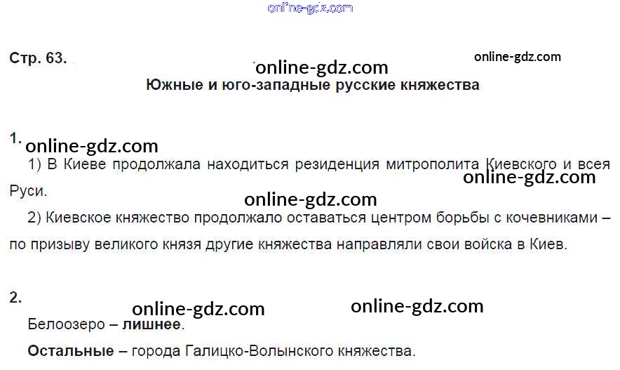 Готовые домашние задания по Истории за 6 класс Рабочая тетрадь Артасов, Данилов 2016 - §14. Новгородская республика стр. 63