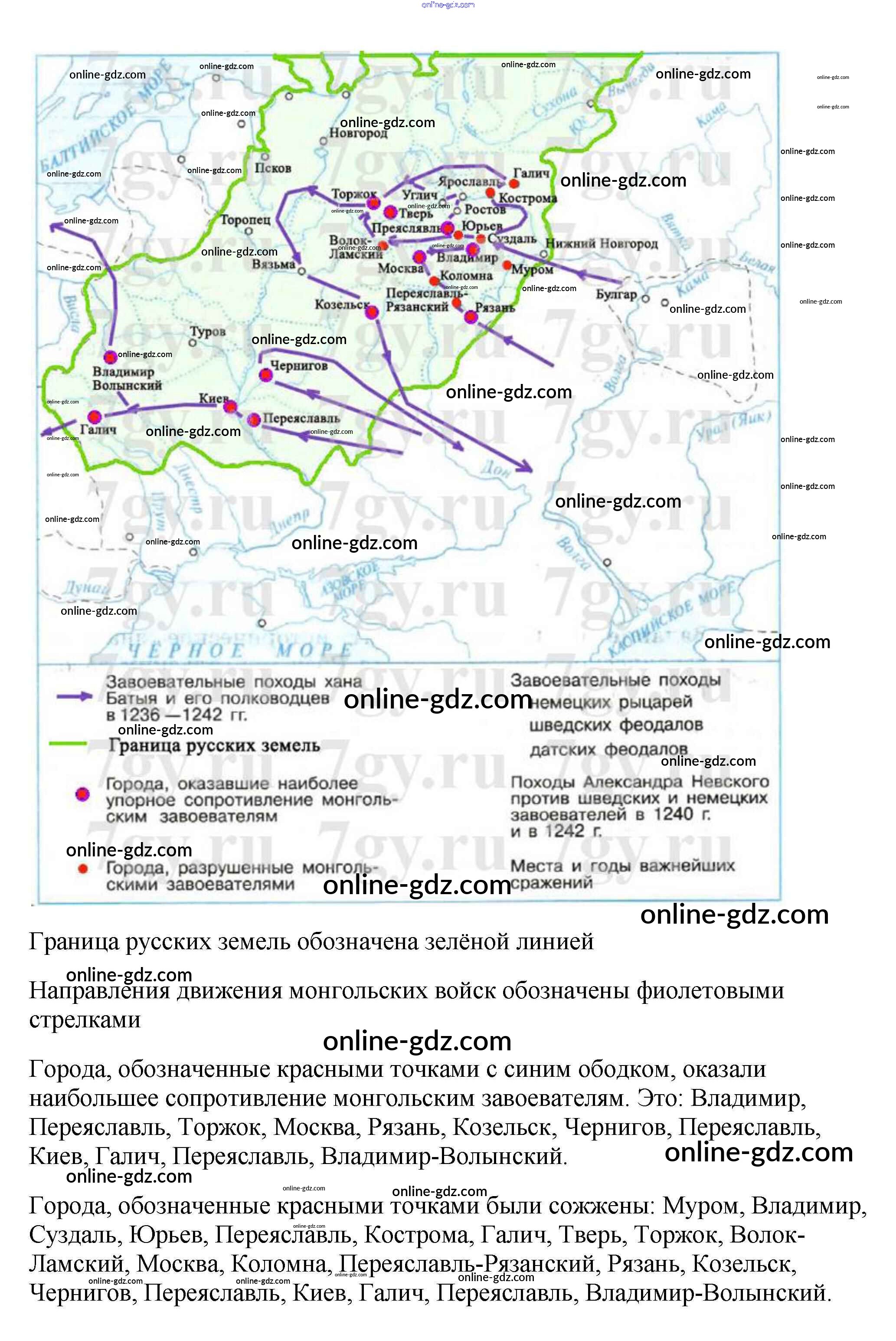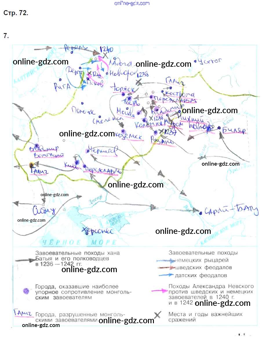 Готовые домашние задания по Истории за 6 класс Рабочая тетрадь Артасов, Данилов 2016 - §16. Батыево нашествие на Русь стр. 72