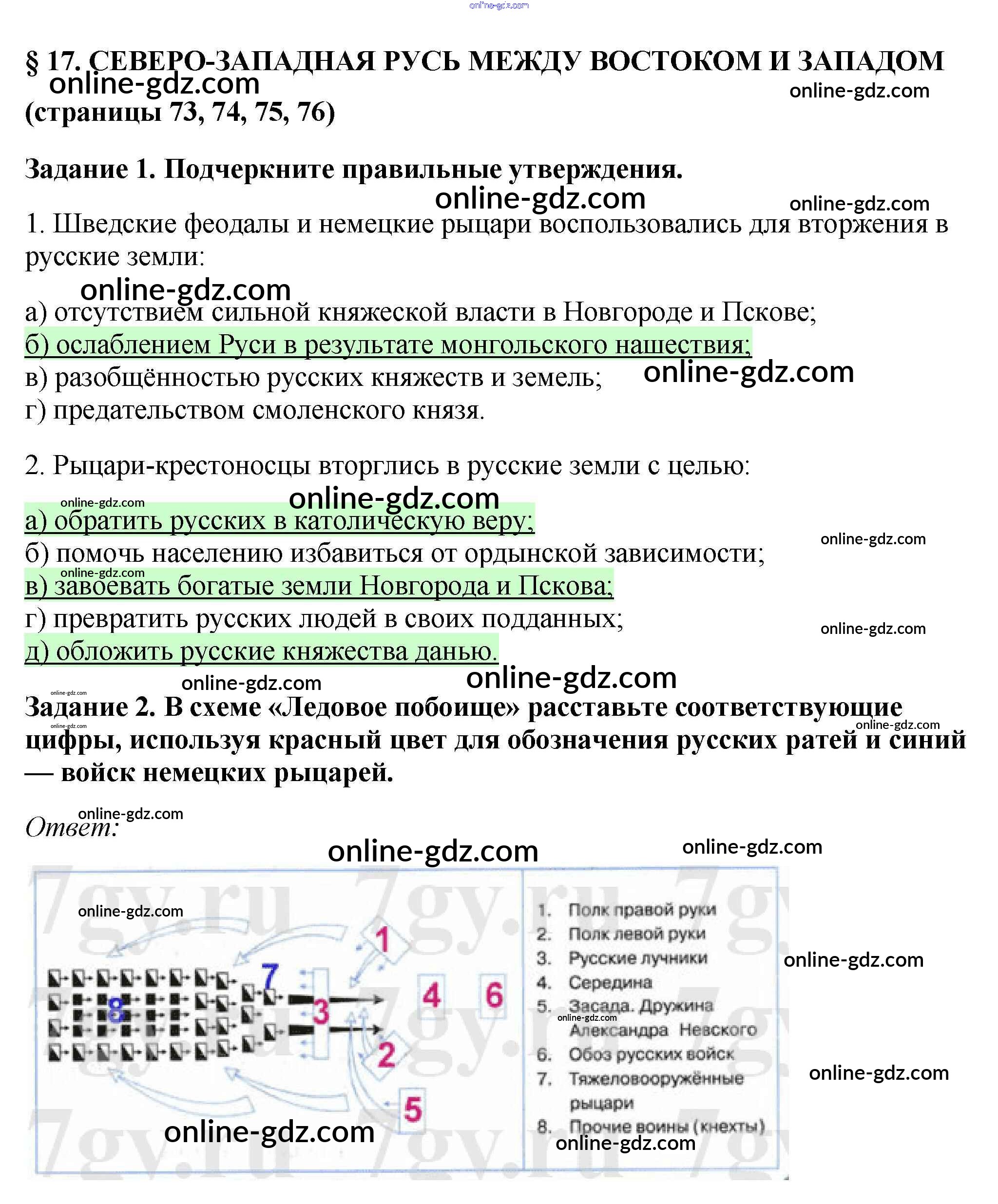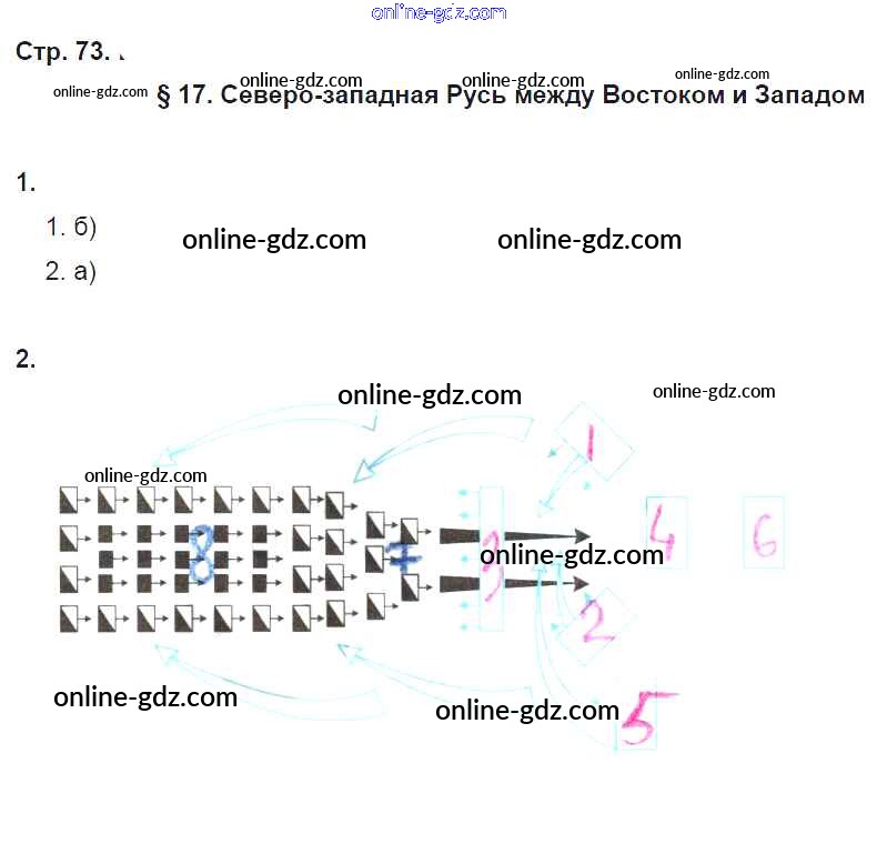 Готовые домашние задания по Истории за 6 класс Рабочая тетрадь Артасов, Данилов 2016 - §17. Северо-западная Русь между Востоком и Западом стр. 73