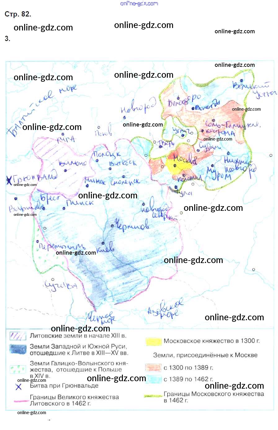 Готовые домашние задания по Истории за 6 класс Рабочая тетрадь Артасов, Данилов 2016 - §19. Литовское государство стр. 82
