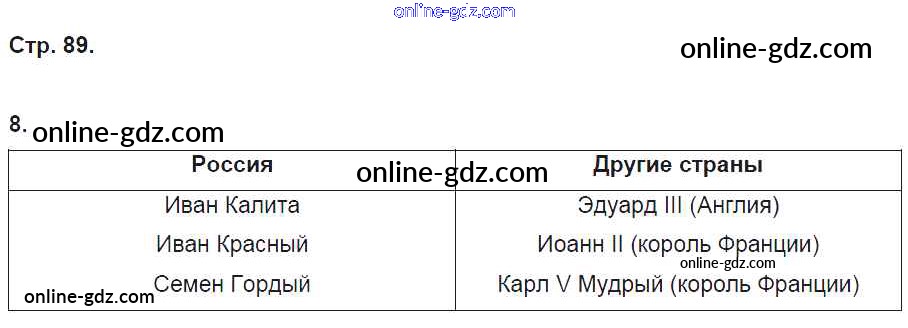 Готовые домашние задания по Истории за 6 класс Рабочая тетрадь Артасов, Данилов 2016 - §20. Усиление Московского княжества стр. 89