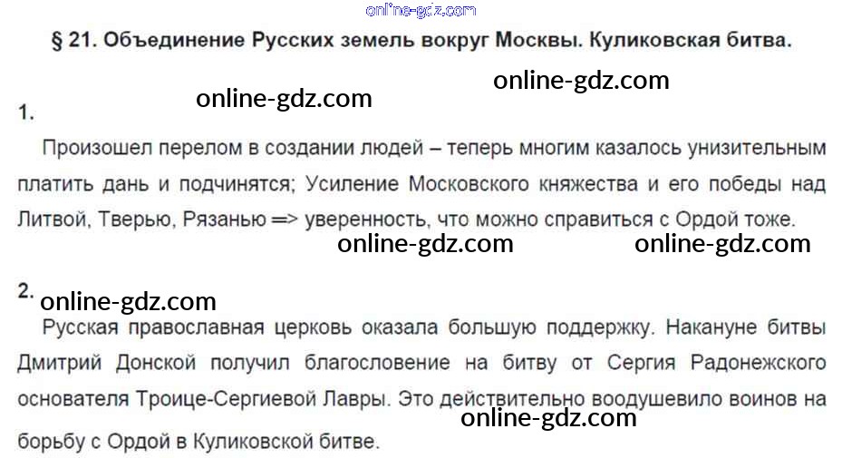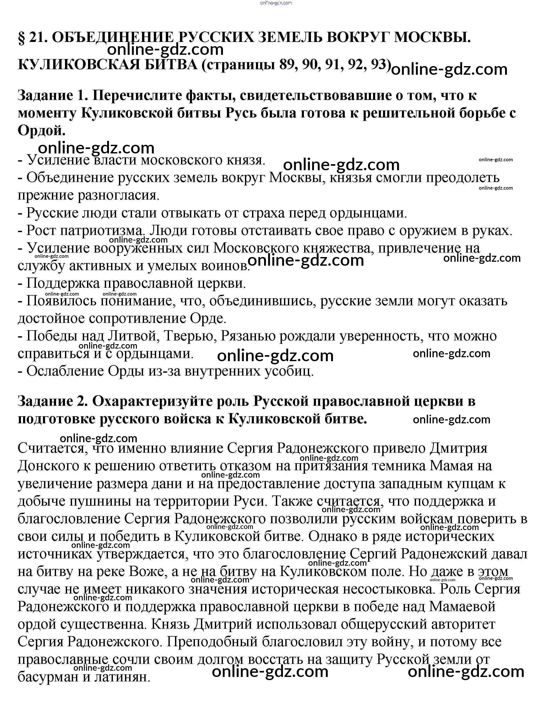 Готовые домашние задания по Истории за 6 класс Рабочая тетрадь Артасов, Данилов 2016 - §21. Объединение русских земель вокруг Москвы. Куликовская битва стр. 89