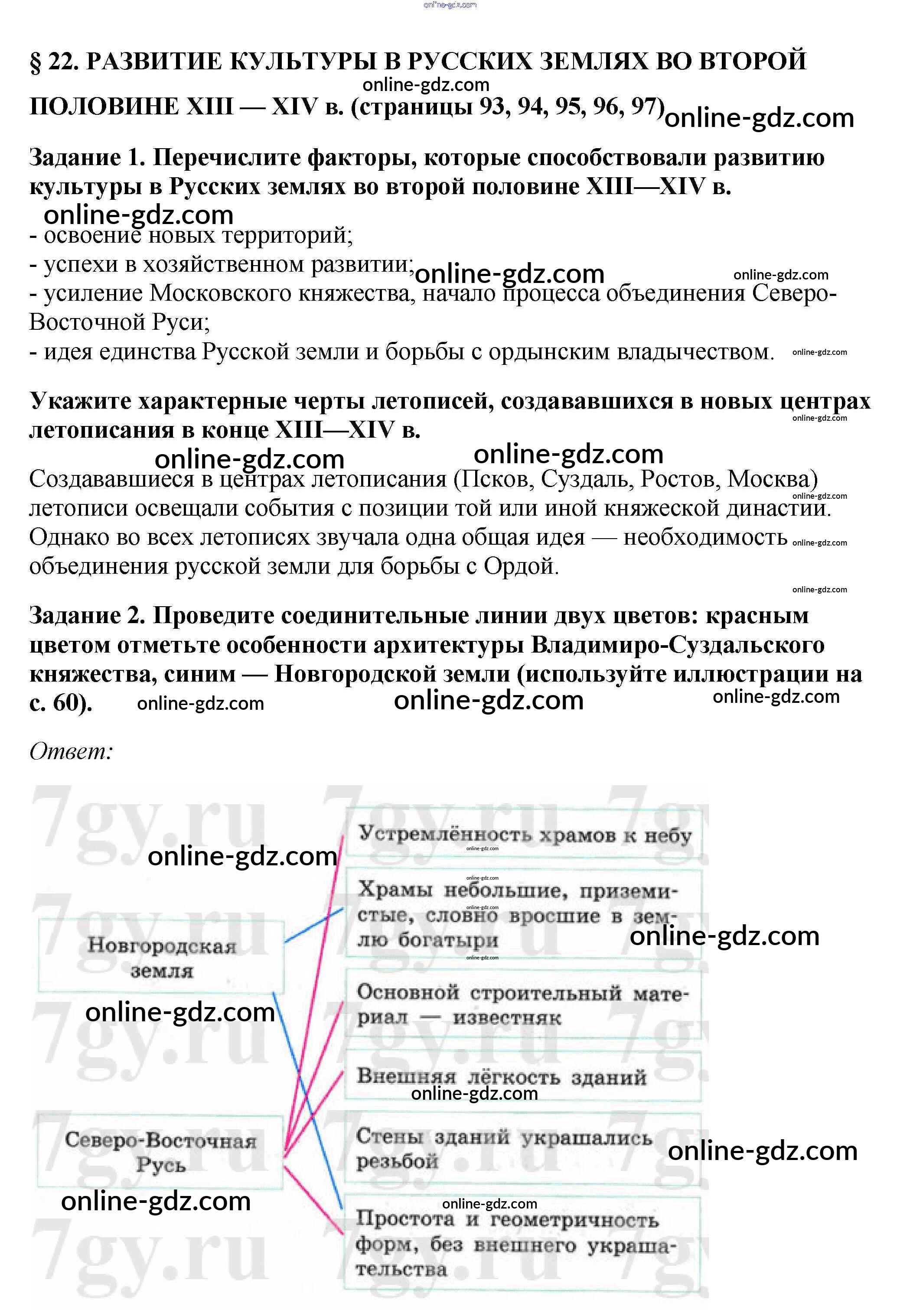 Готовые домашние задания по Истории за 6 класс Рабочая тетрадь Артасов, Данилов 2016 - §22. Развитие культуры в русских землях во второй половине XIII-XIV в. стр. 93