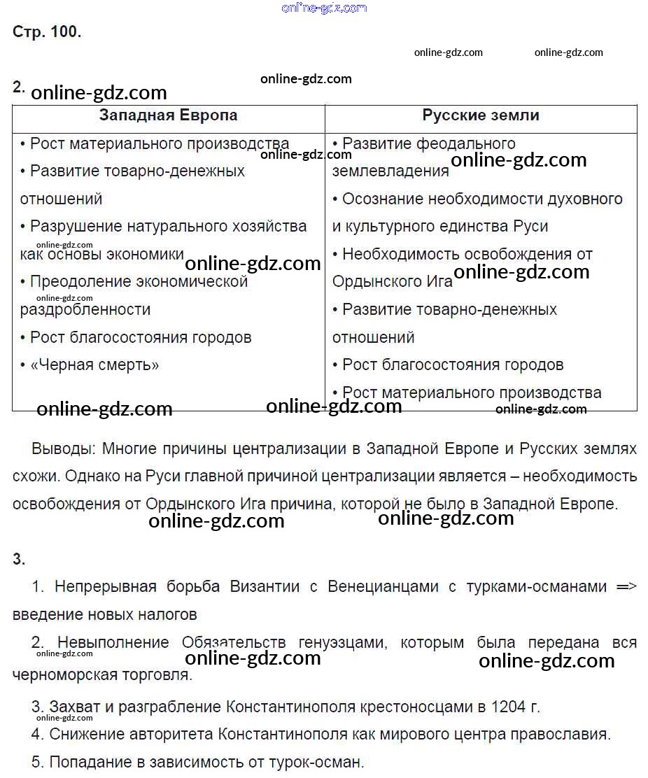 Готовые домашние задания по Истории за 6 класс Рабочая тетрадь Артасов, Данилов 2016 - §23. Русские земли на политической карте Европы и мира в начале XV в. стр. 100