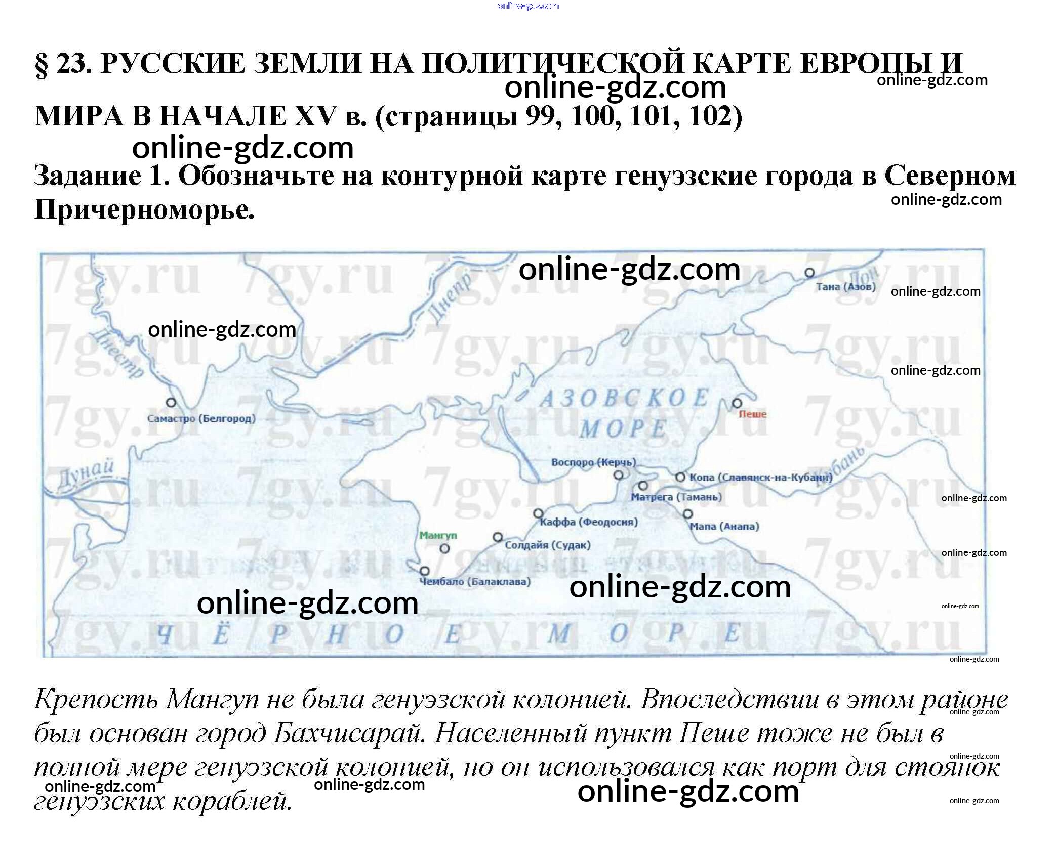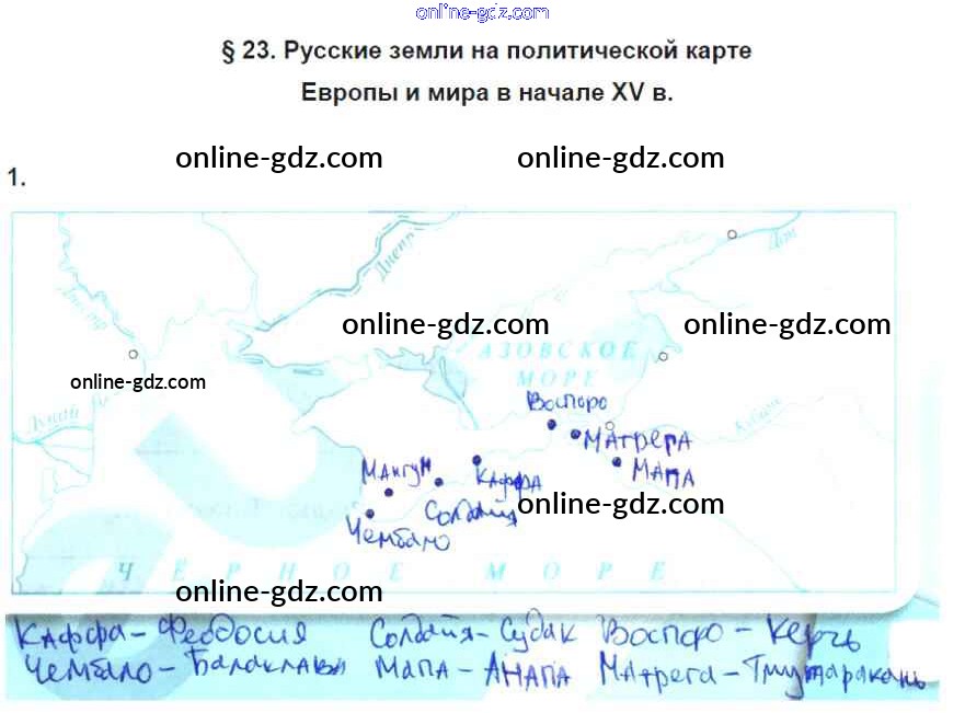 Готовые домашние задания по Истории за 6 класс Рабочая тетрадь Артасов, Данилов 2016 - §23. Русские земли на политической карте Европы и мира в начале XV в. стр. 99
