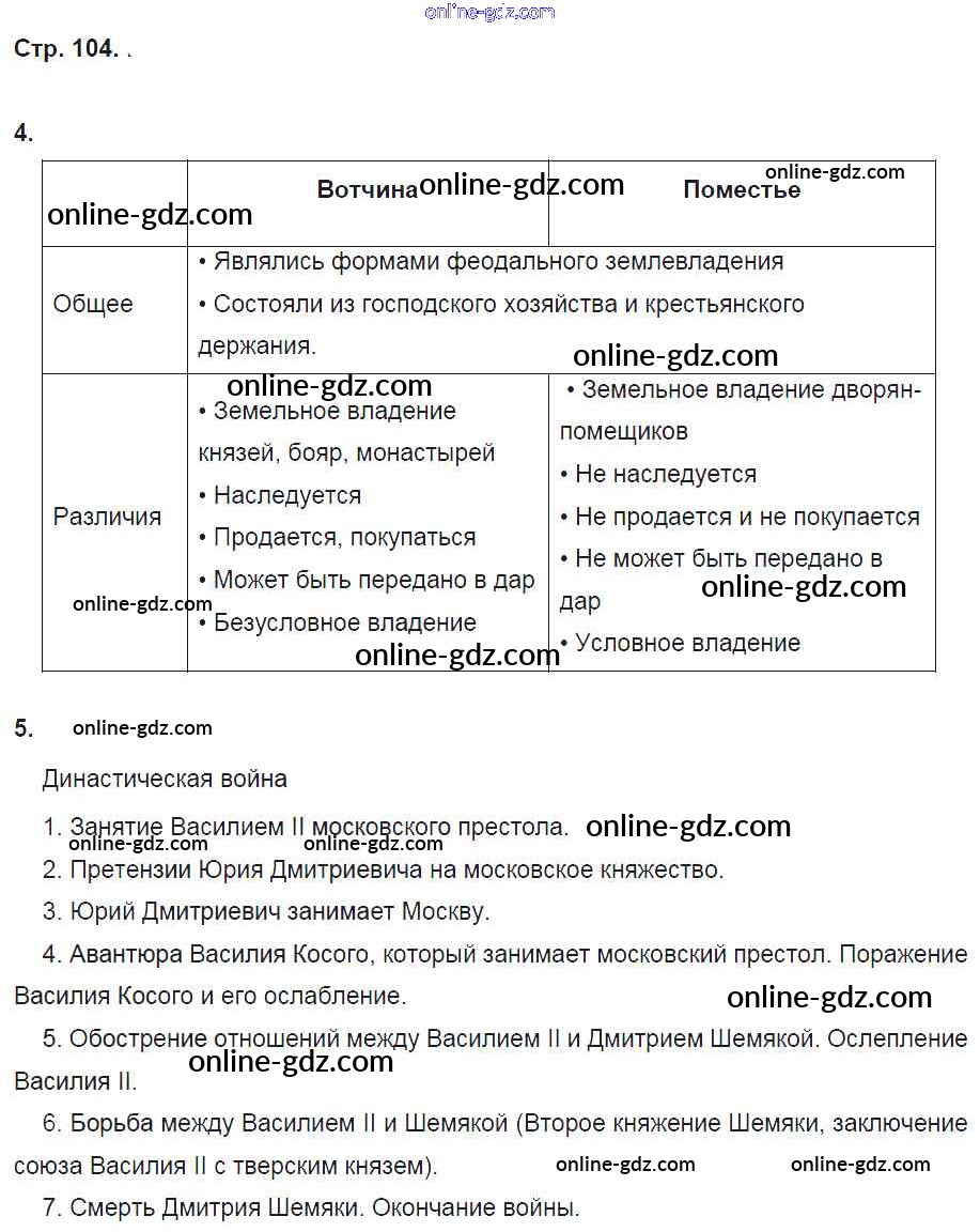 Готовые домашние задания по Истории за 6 класс Рабочая тетрадь Артасов, Данилов 2016 - §24. Московское княжество в первой половине XV в. стр. 104
