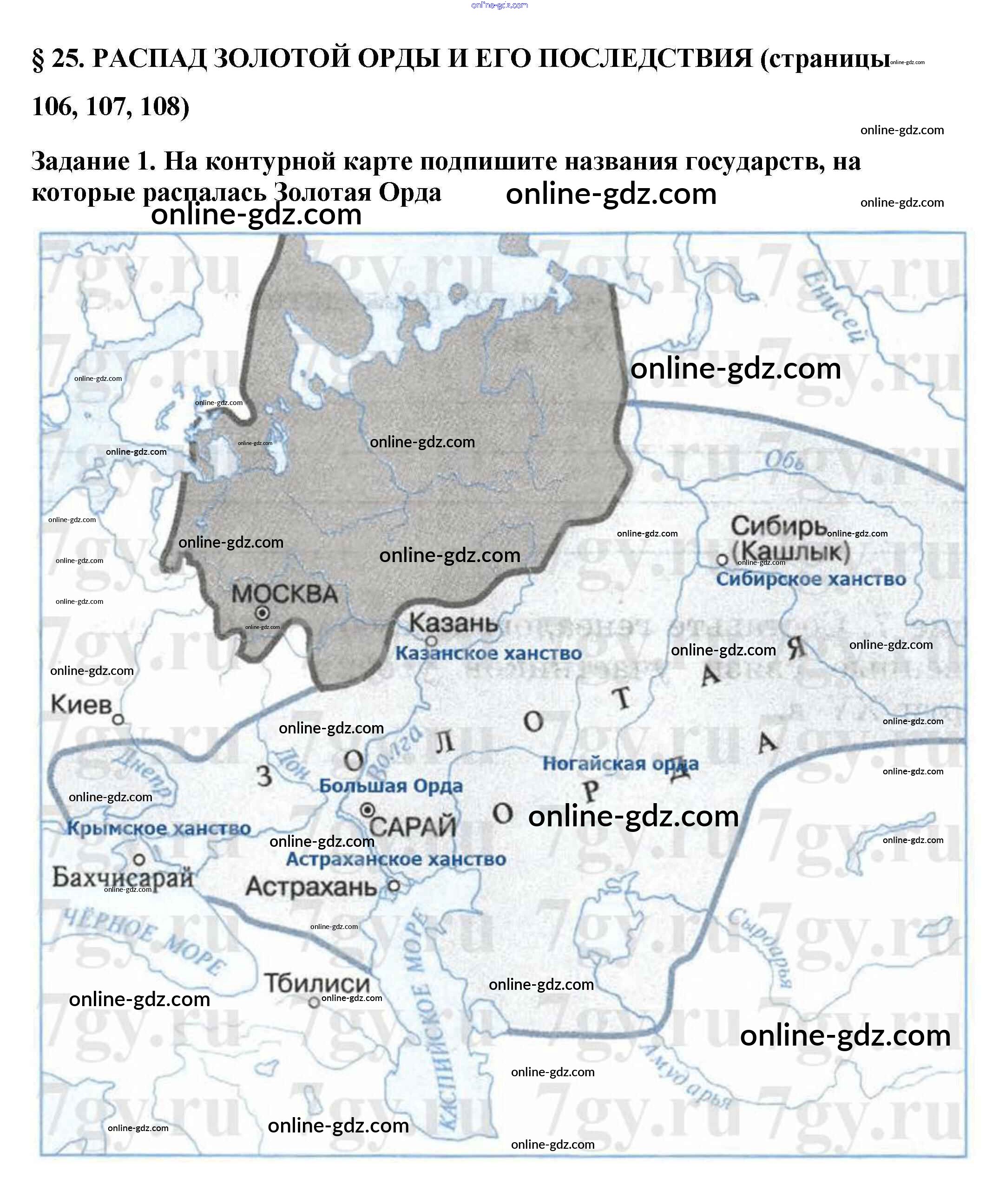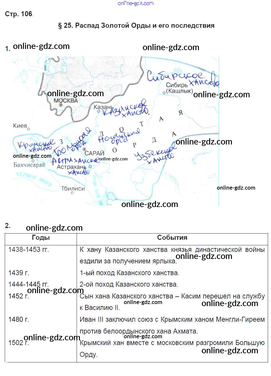 Готовые домашние задания по Истории за 6 класс Рабочая тетрадь Артасов, Данилов 2016 - §25. Распад Золотой Орды и его последствия стр. 106