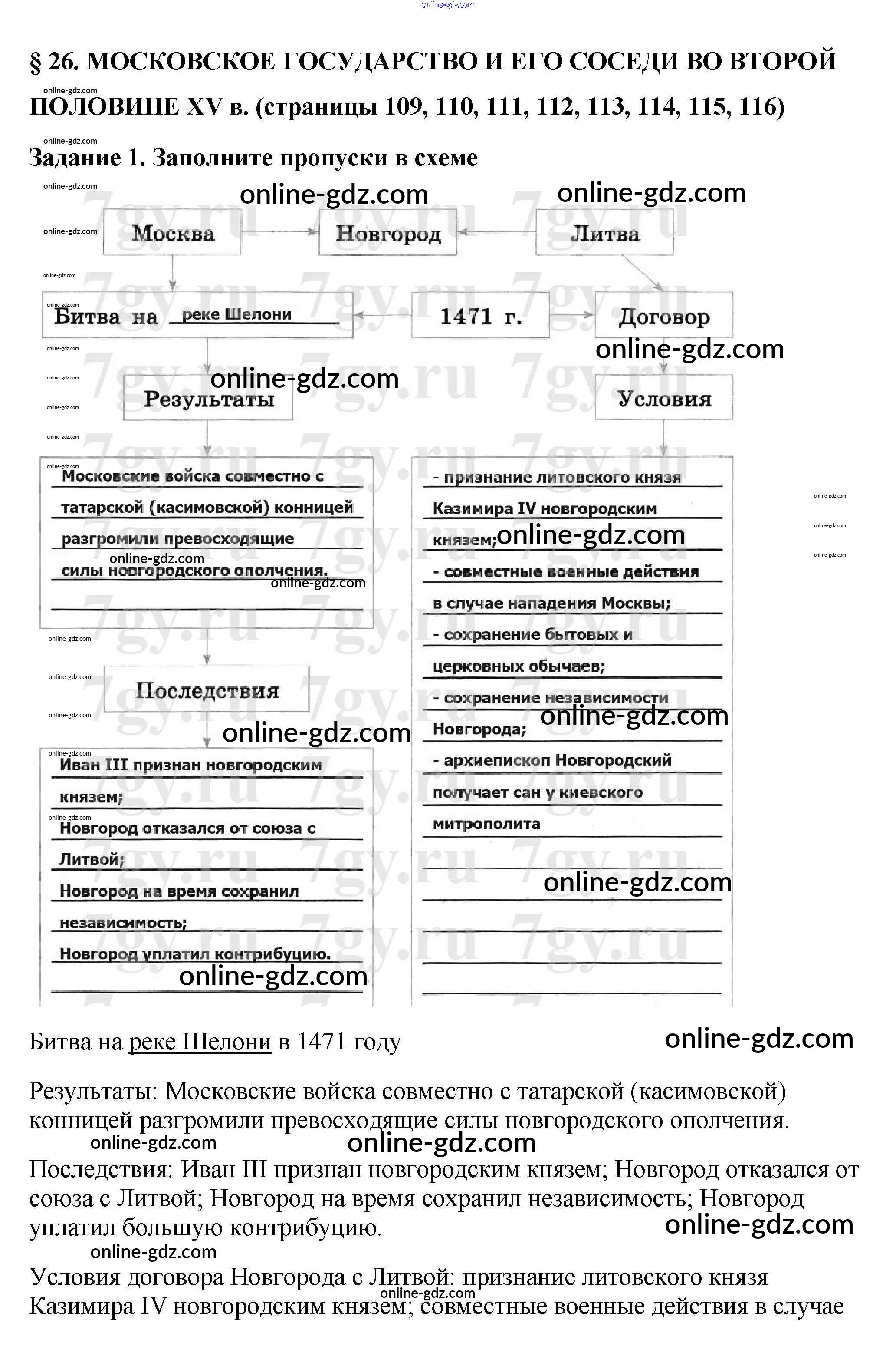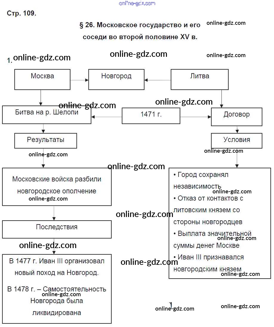 Готовые домашние задания по Истории за 6 класс Рабочая тетрадь Артасов, Данилов 2016 - §26. Московское государство и его соседи во второй половине XV в. стр. 109