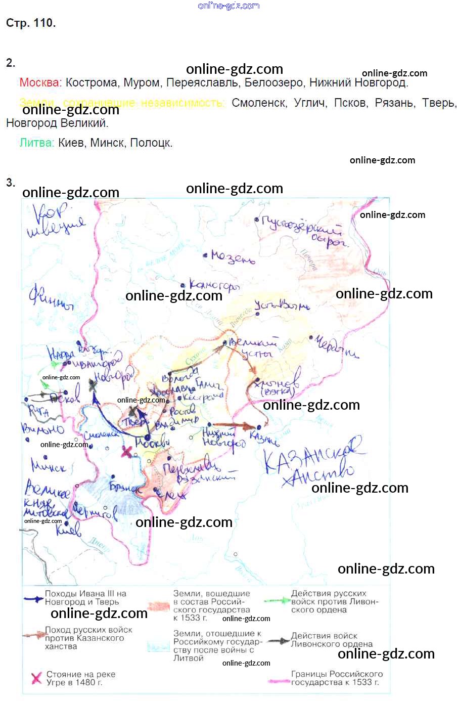 Готовые домашние задания по Истории за 6 класс Рабочая тетрадь Артасов, Данилов 2016 - §26. Московское государство и его соседи во второй половине XV в. стр. 110