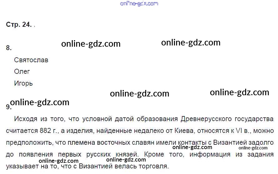 Готовые домашние задания по Истории за 6 класс Рабочая тетрадь Артасов, Данилов 2016 - §5. Становление Древнерусского государства стр. 24