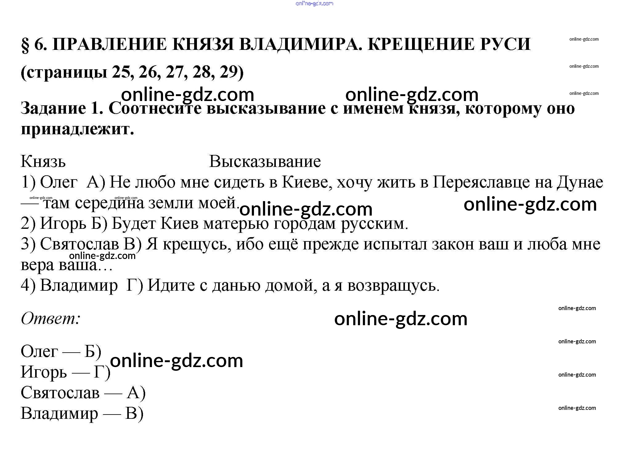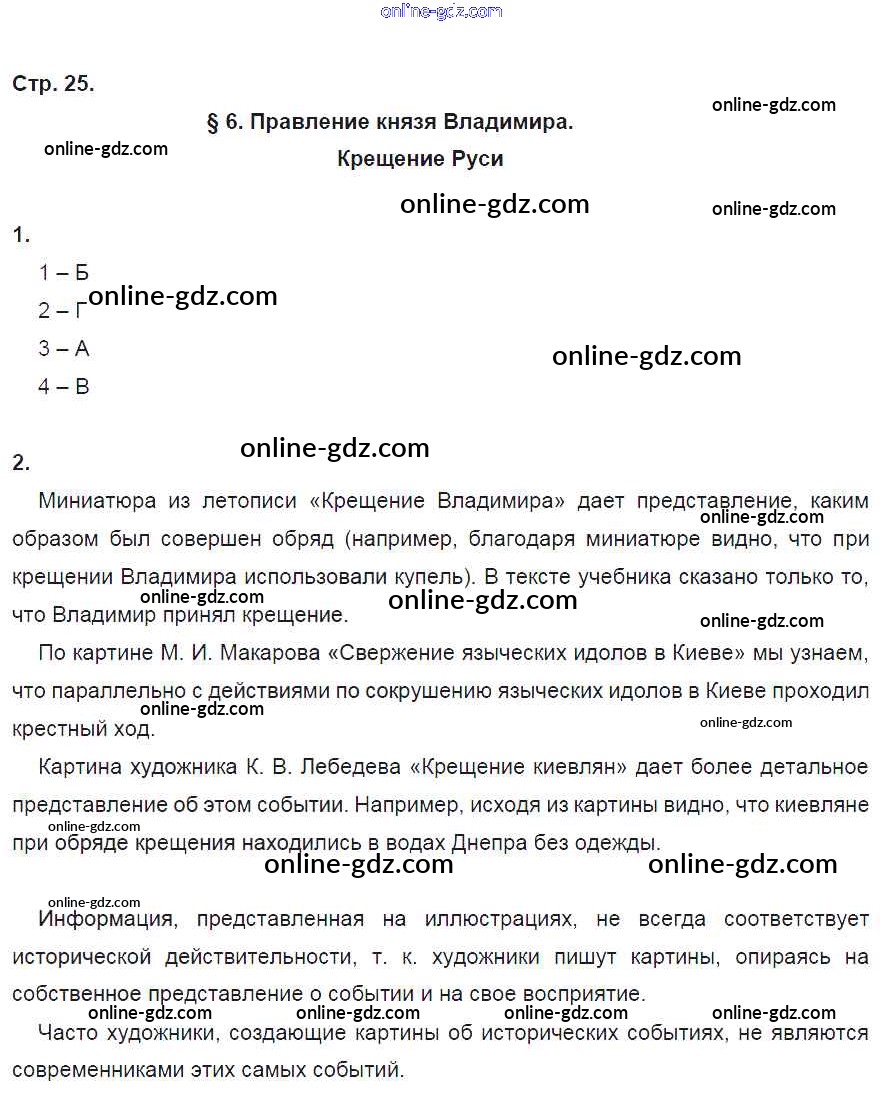 Готовые домашние задания по Истории за 6 класс Рабочая тетрадь Артасов, Данилов 2016 - §6. Правление Князя Владимира. Крещение Руси стр. 25